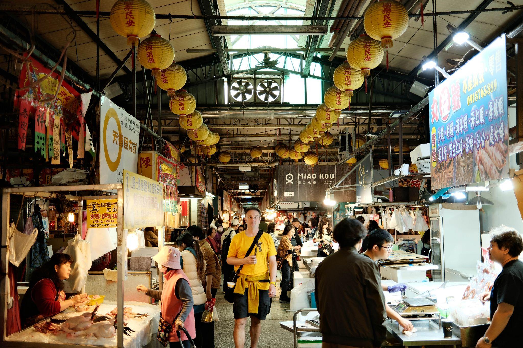 台南的國華街是一網打盡美食的知名景點. 一路從民族路沿著國華街走到民生路都是吃不完的東西. 這次不知怎麼走走到一個岔路後進了一個菜市場. 我想說就一般的菜市場, 在國華街旁邊也很正常. OC媽就拿出家庭主婦的看家本領在那邊東看西看問價錢, 跟台北比價. 我跟小蜜蜜很無聊, 旁邊小廟有階梯我們就坐在那等. 這是我叔叔又飄過來….