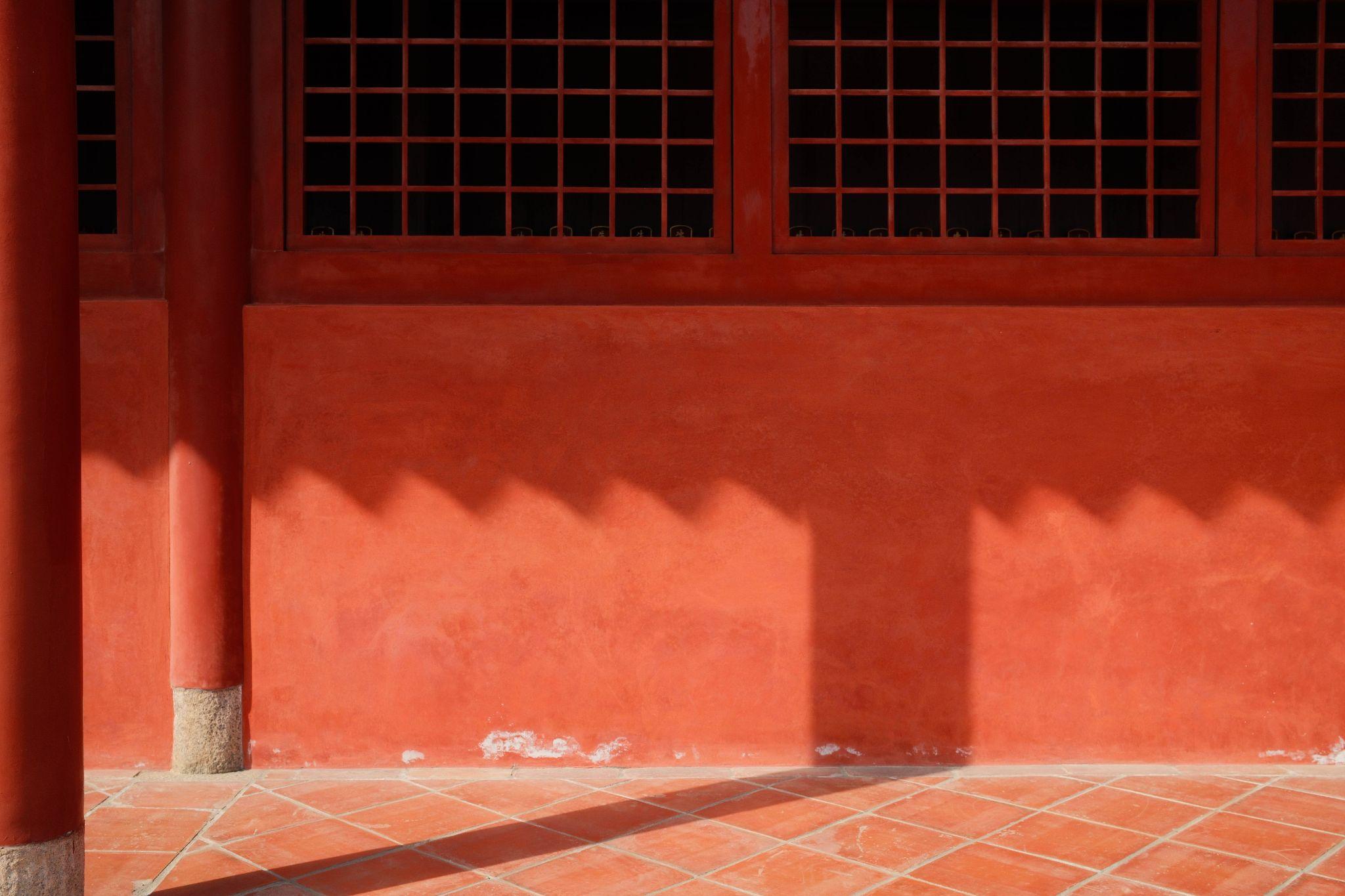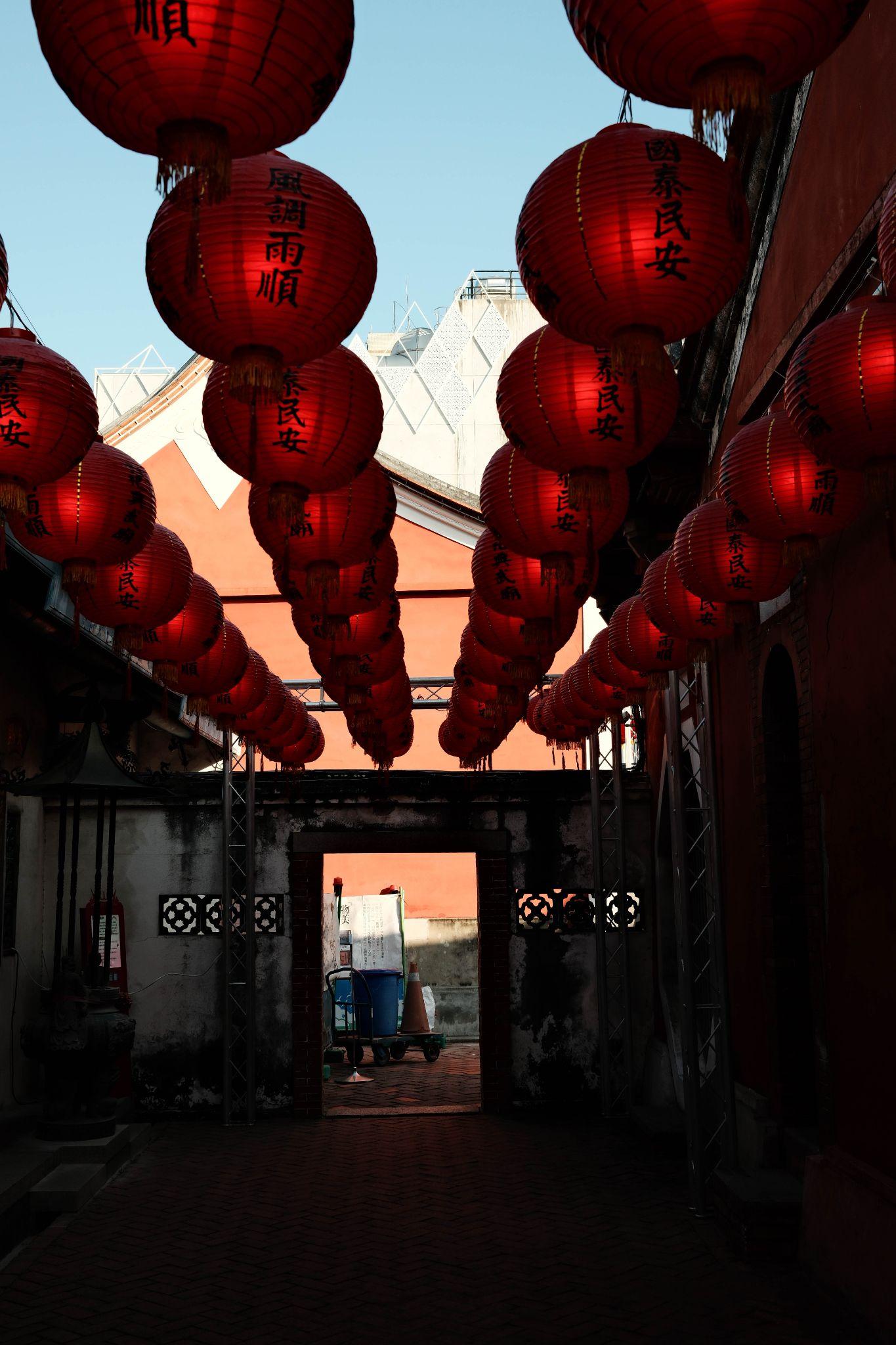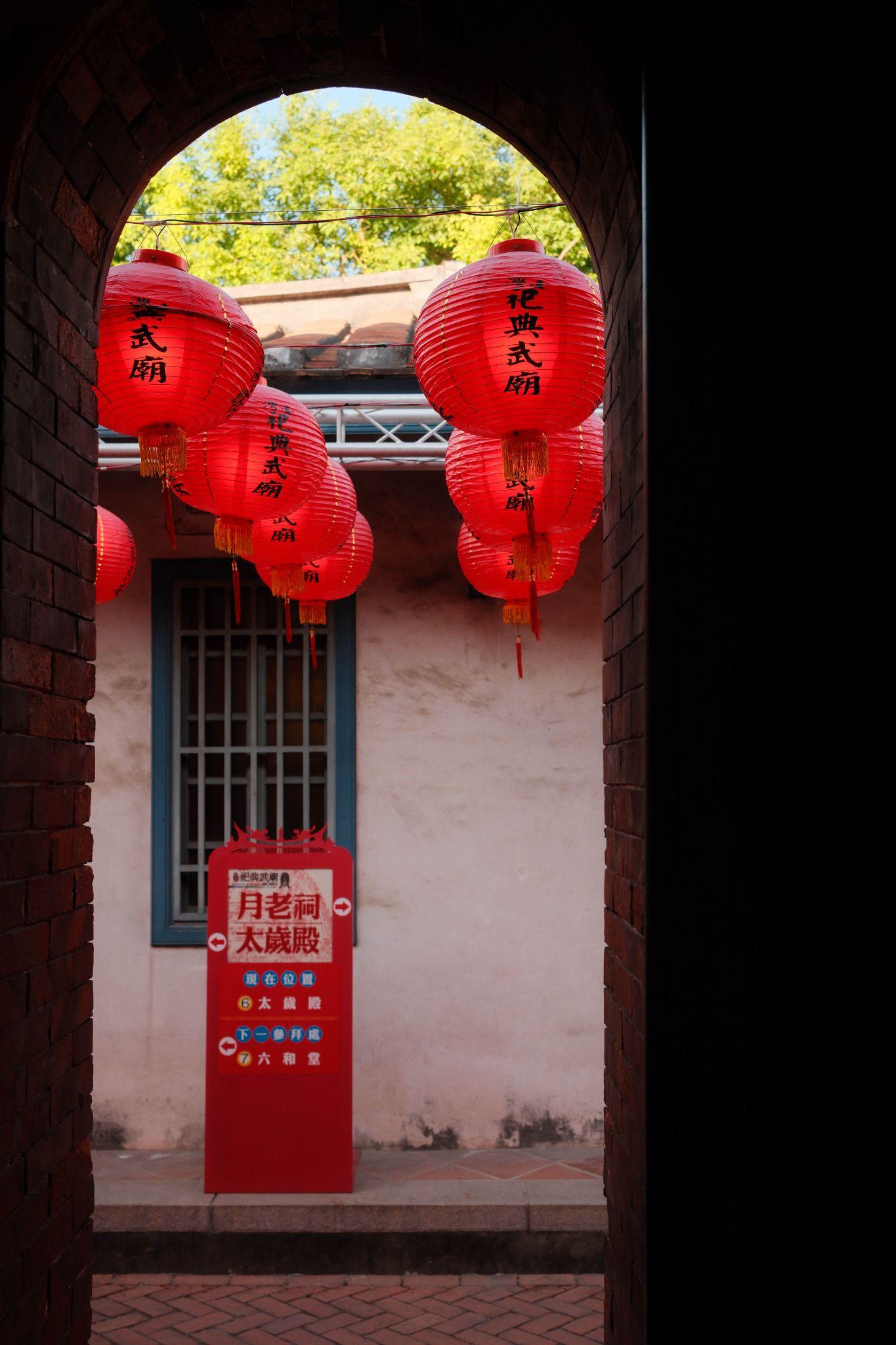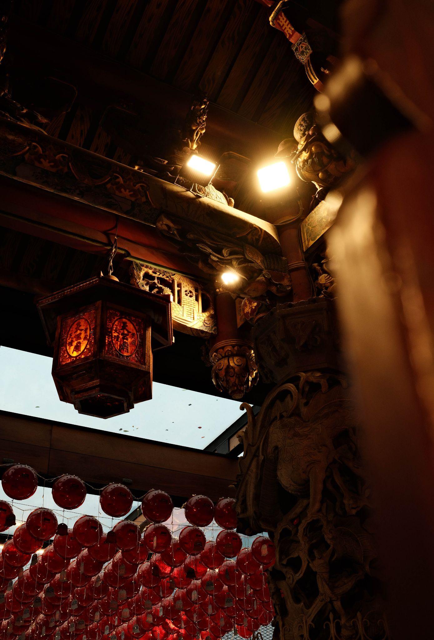 天后宮磚紅色的牆拍照非常美, 中庭的燈籠也很美