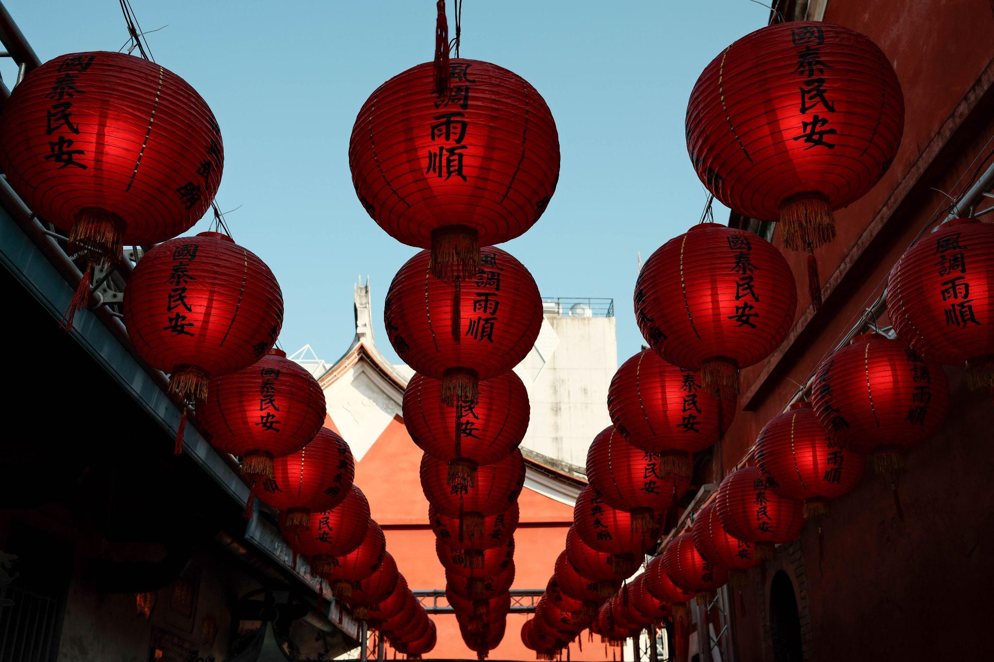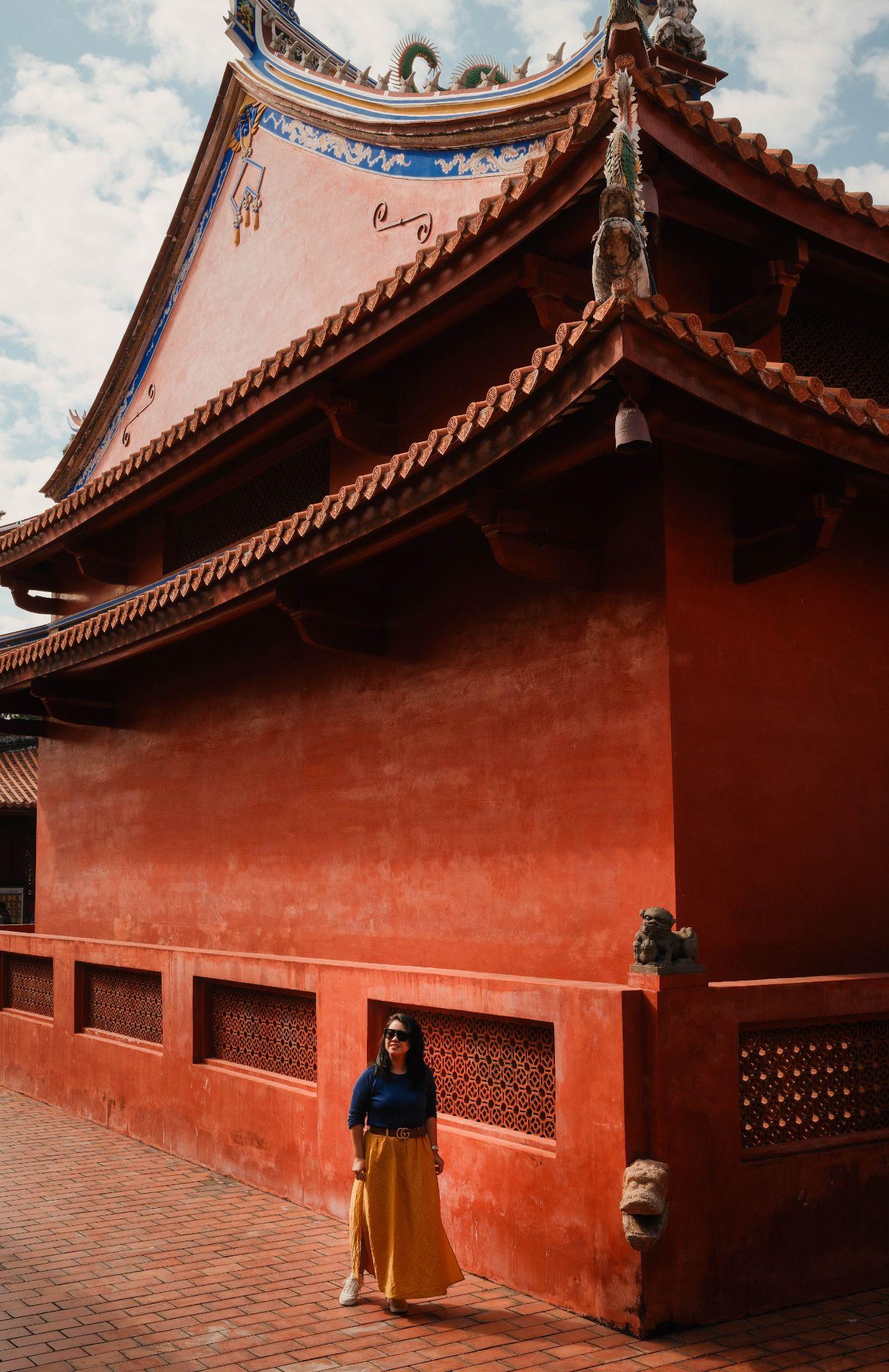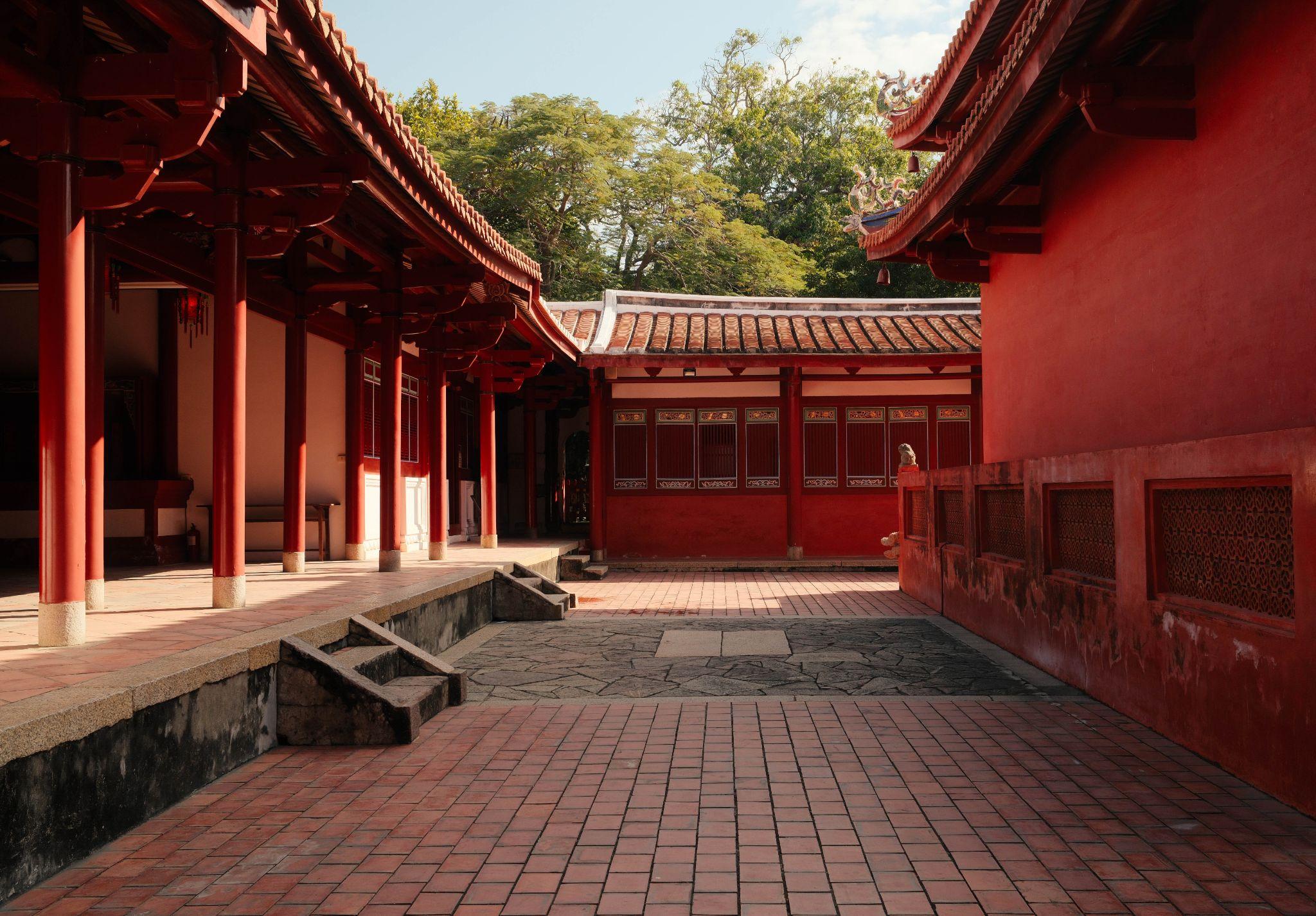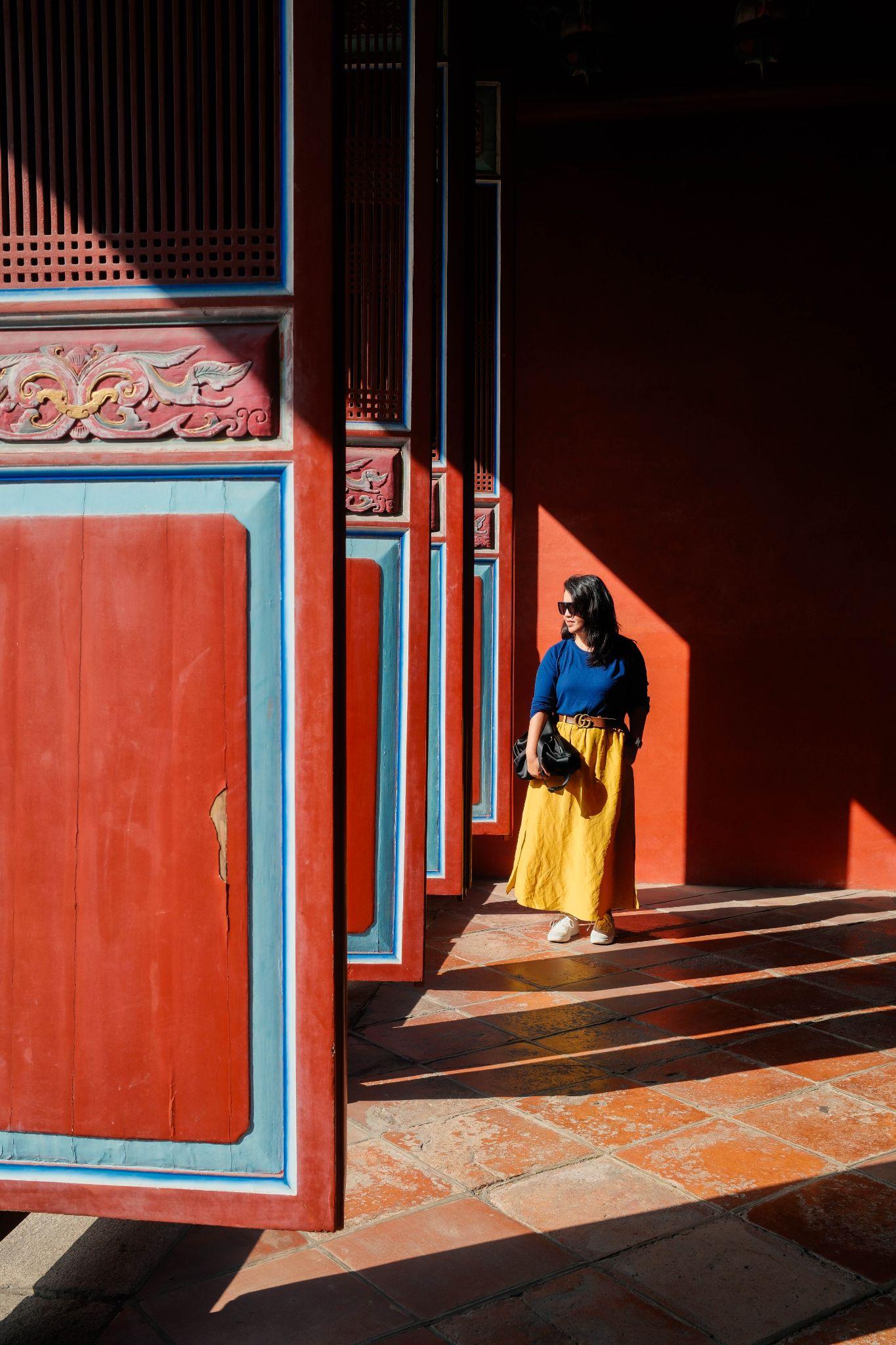 天后宮磚紅色的牆拍照非常美, 中庭的燈籠也很美