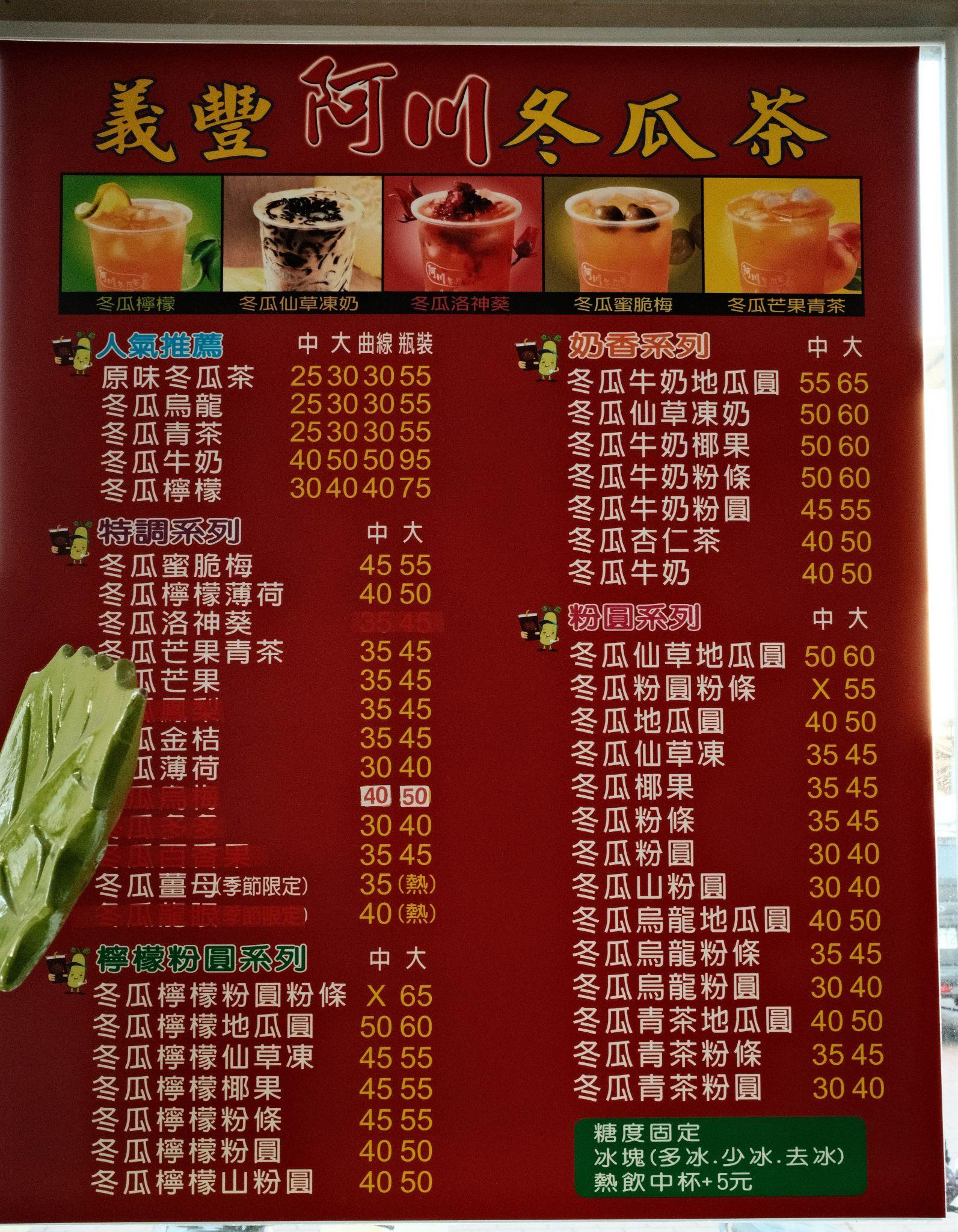 赤崁樓對面有間很有名的“義豐阿川冬瓜茶“. 口味超級無敵多! 在天熱的台南喝冰冷的冬瓜茶真是再適合不過了. 去年來時排隊的人很多, 店員說買冬瓜磚不用等, 我說好啊拿兩個, 沒想到這家的冬瓜磚比一般超市的還大的多, 有夠重…