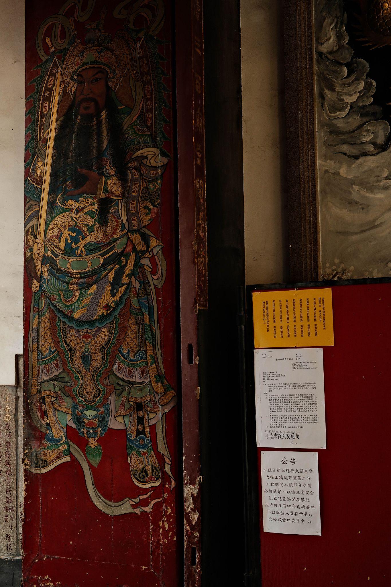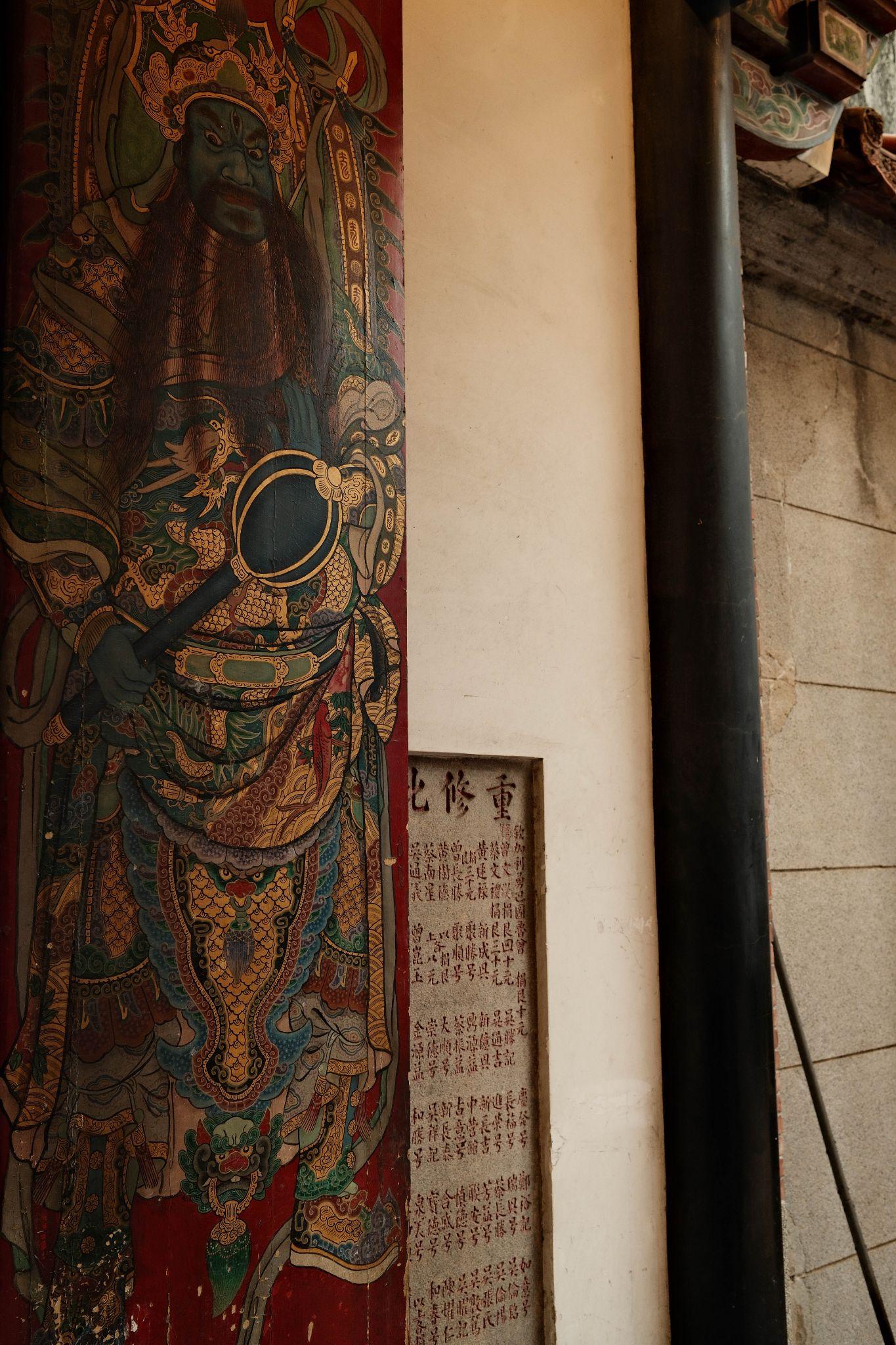 OC 爸說很有名的上帝廟看起來破破爛爛,第一次來時我完全沒有想多看它的念頭. 這次仔細看了一下, 雖然廟暗暗的, 門神的畫卻栩栩如生, 服裝的細節配色都很精緻.