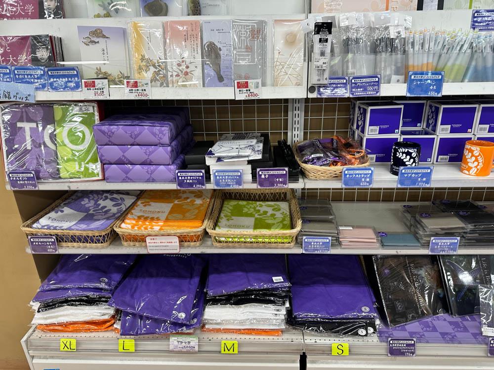 最後看到書店還有開就進去晃一下. 現在都沒人看書了… UCI的“書店“ 半本書都沒有, 東北大學的還有一點點, 主要變成小型便利商店賣點心飲料, 倒是角落賣的東北大學紀念品吸引到我.