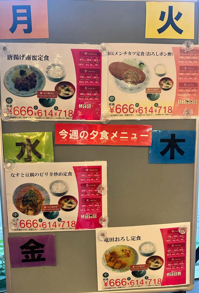 不遠處就是Sukiya 跟 Coco一番屋, 這兩家雖然貴一點但應該好吃許多…. 食堂的好處是方便每天都有變化, 我把那個禮拜的菜單都拍了下來