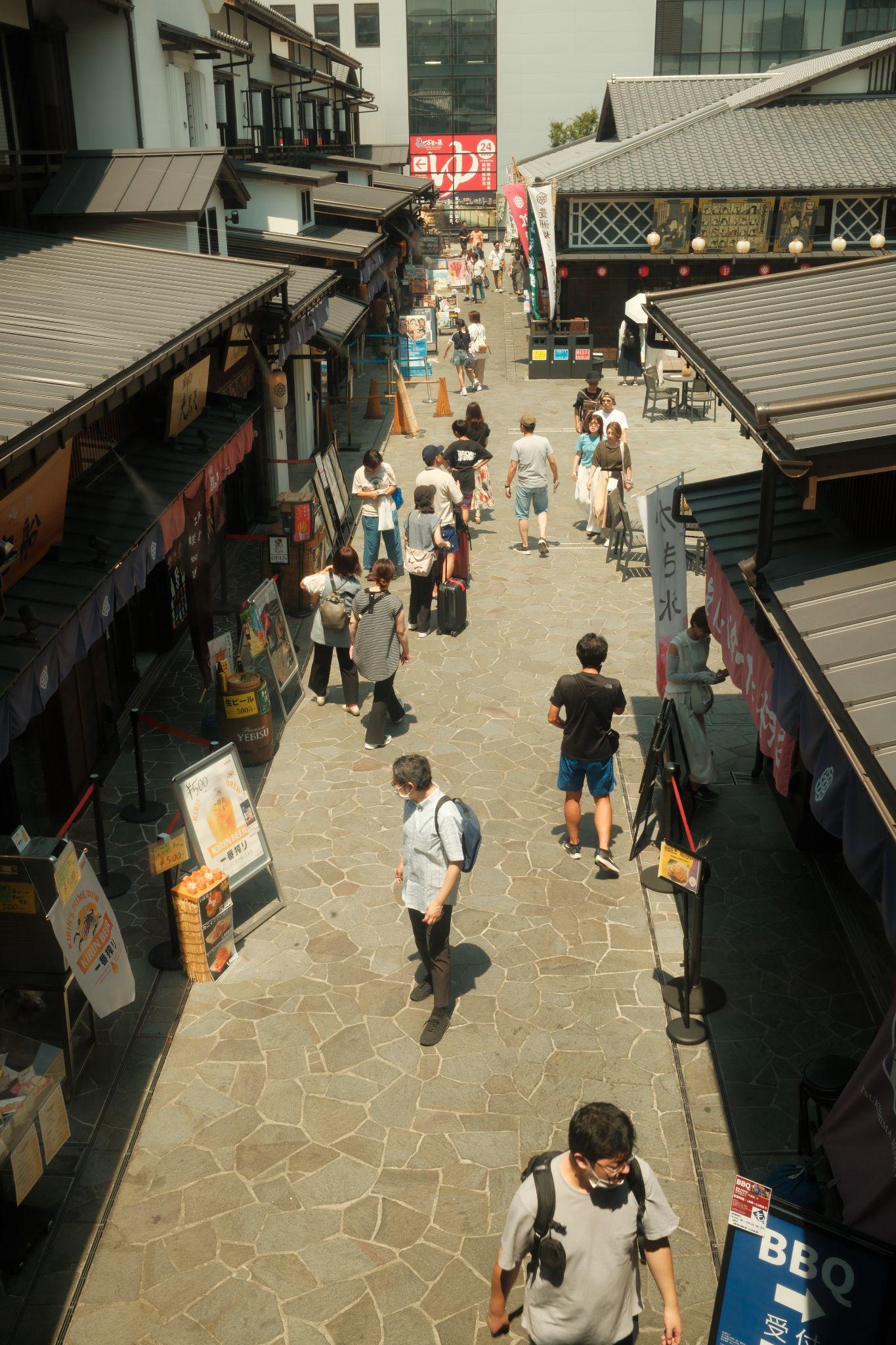 「千客萬來」感覺很touristy, 聽說價位偏高,有些人覺得是tourist trap, 但對家裡有小孩或長輩的其實這裡非常非常合適. 有冷氣吹,坐的又舒服自在 (小蜜蜜後來就坐在這午睡了半小時).