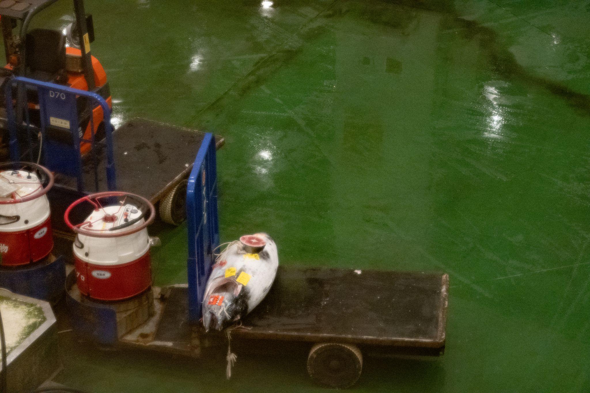 我們九點多到的時候早就結束正在清理, 但不知為何有一隻鮪魚孤孤單單的躺在一旁…. (是工作人員自留的嗎….)