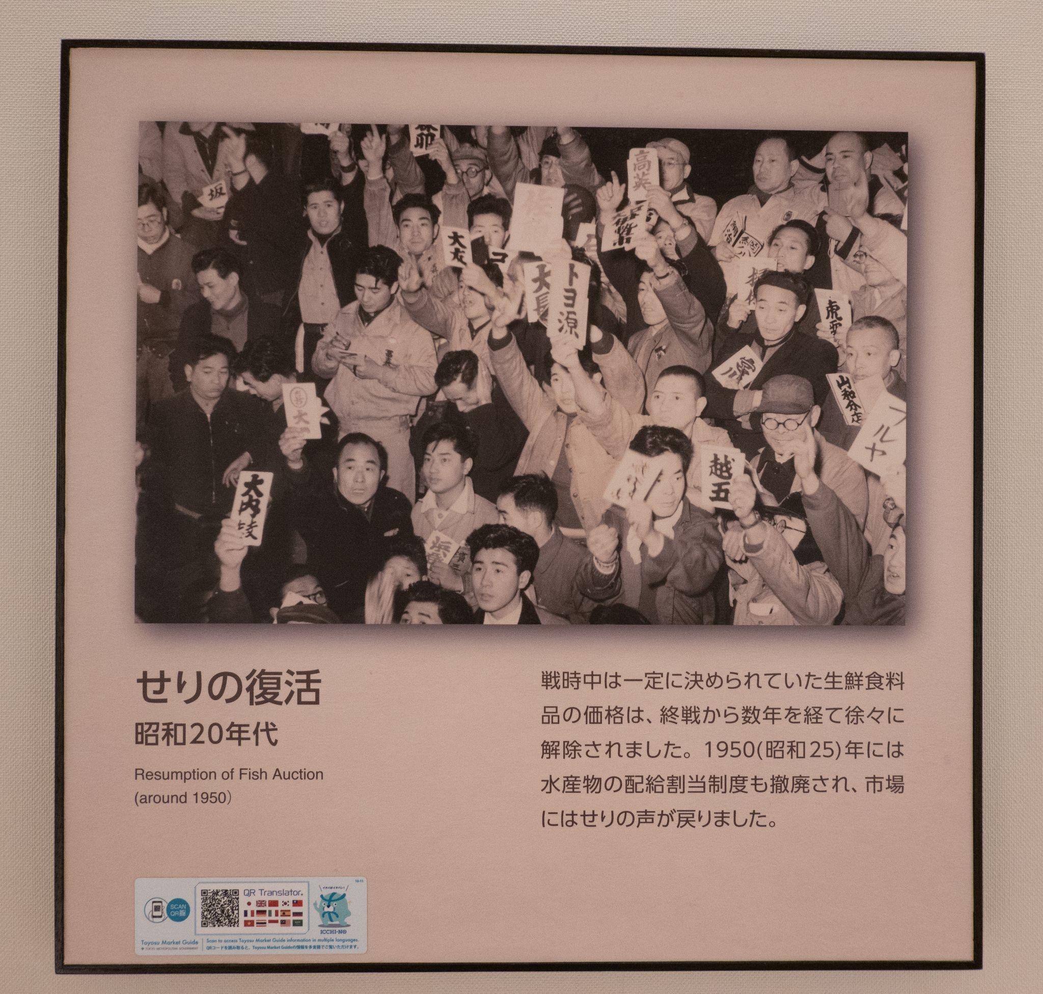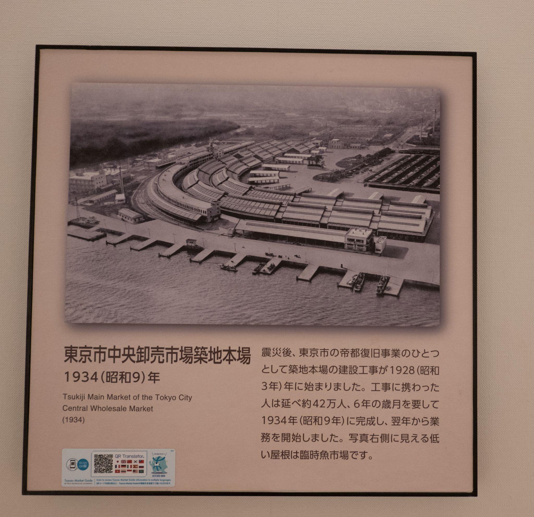 觀光客的走道有很多歷史照片, 介紹築地市場的歷史, 相當有意思, 大正時代興建, 平成最後一年關閉拆除. 我覺得日本人的照片都很有感情, 雖然我對築地市場一點也不熟看這些照片也看得有點熱淚盈匡呢~ 尤其是築地市場最後一天的各種照片