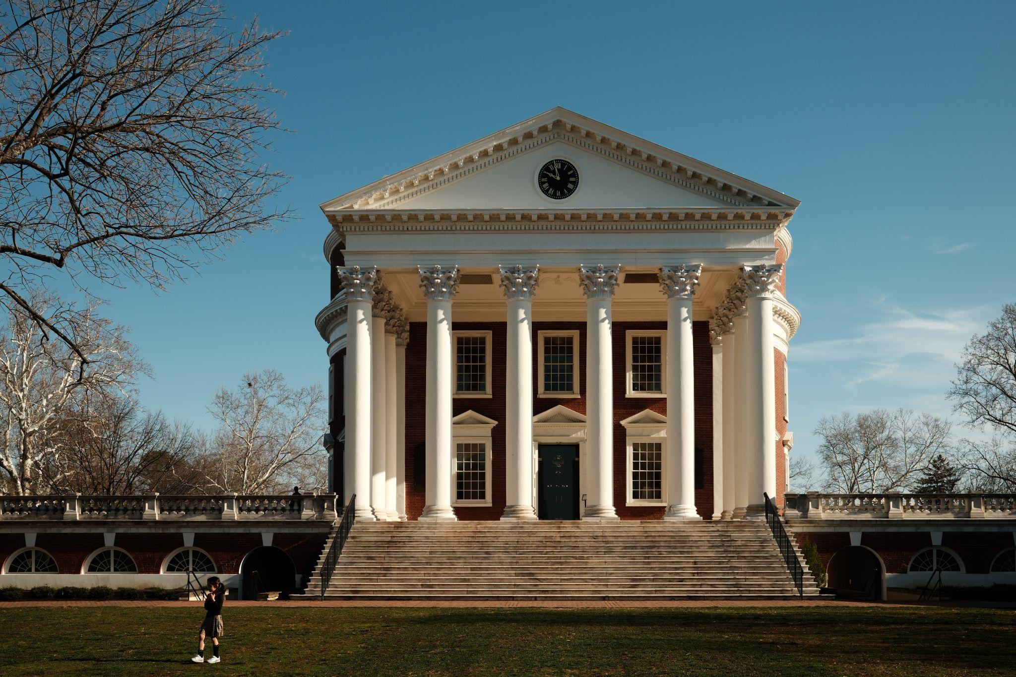 UVA的地標Rotunda跟Virginia State Capitol類似, 都是Thomas Jefferson參考希臘神廟 所設計. Thomas Jefferson真的很喜歡羅馬希臘神廟, 在他設計的幾個建築中都一定有圓柱, 圓頂, 跟利用圓頂的天窗.