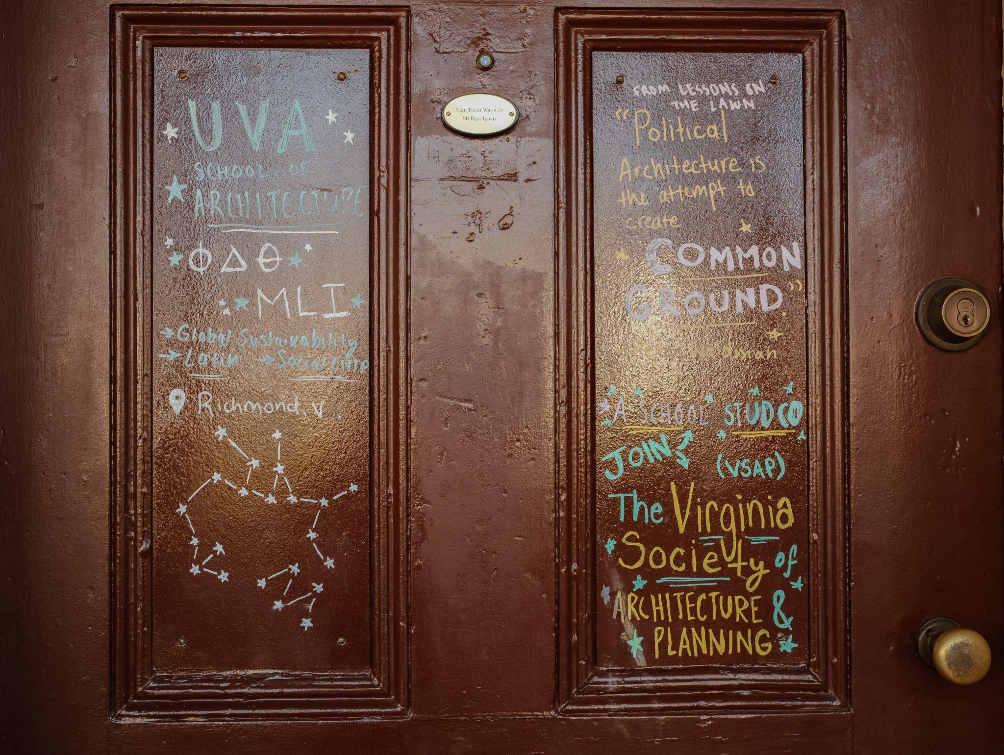 另個有趣的是很多學生在門上寫自我介紹, 像名字, 科系, 社團, 興趣等. 看了一遍發現念建築系的還不少, 後來上網查了一下UVA的確有個很大的建築系. Thomas Jefferson那個愛建築這裡有建築系也是應該的.