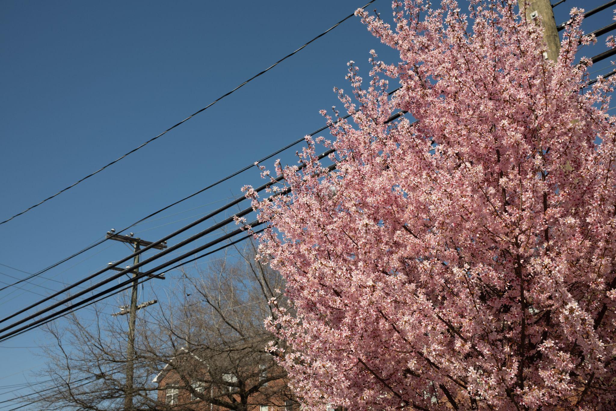 附近的街道有櫻花正盛開中, 意料外的收穫. 沒想到會在這裡看到櫻花