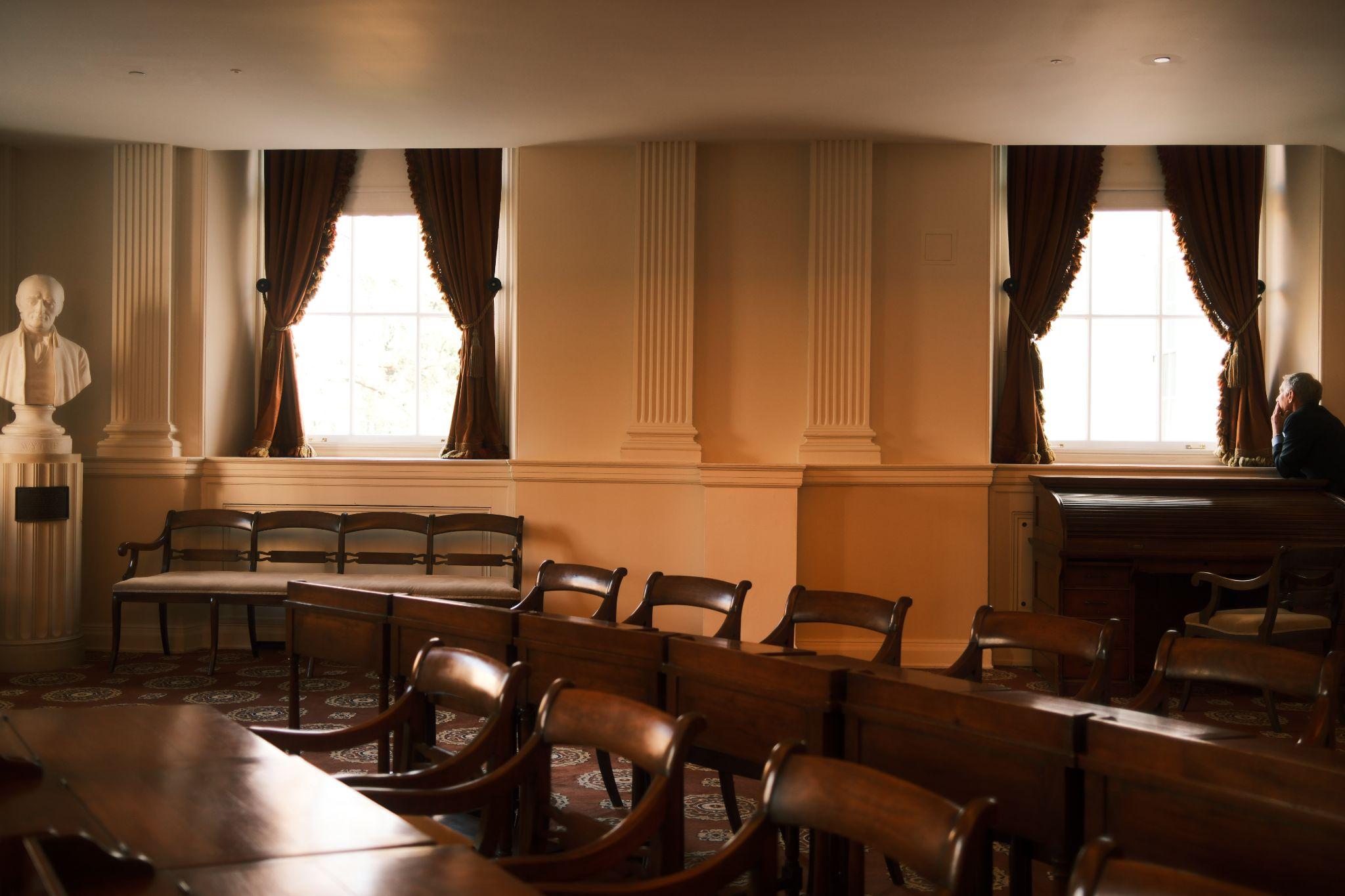 Virginia State Capitol 平時都可以以免費進去參觀, 也有免費的導覽. 我們沒有聽導覽因為小蜜蜜沒辦法聽一個小時. 自己走可以看圓頂正下方的華盛頓雕像, 環繞的美國總統雕像, 舊的Senate 跟 House 議會廳 (後來蓋了新的, 舊的沒再用)